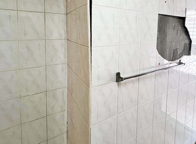 牆面磁磚隆起/空心灌注修補 牆面磁磚出現鼓音、鬆動、剝落情形,易造成安全隱憂。家輔工程採用非破壞式灌注工法,以Epoxy環氧樹脂高壓灌注深入結構空隙,避免敲除磁磚、降低粉塵與噪音,快速補強不破壞裝潢,多數案例可在一日內完工。