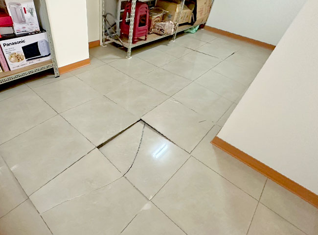 地板磁磚隆起/破裂修補 地板磁磚膨脹隆起、出現裂縫,常因結構空鼓或舊黏著劣化所致。我們針對地磚局部空心、鬆動、破裂問題,進行精準拆補或灌注補強,施工整齊、快速、安全不跳磚,同時兼顧美觀與長效性。